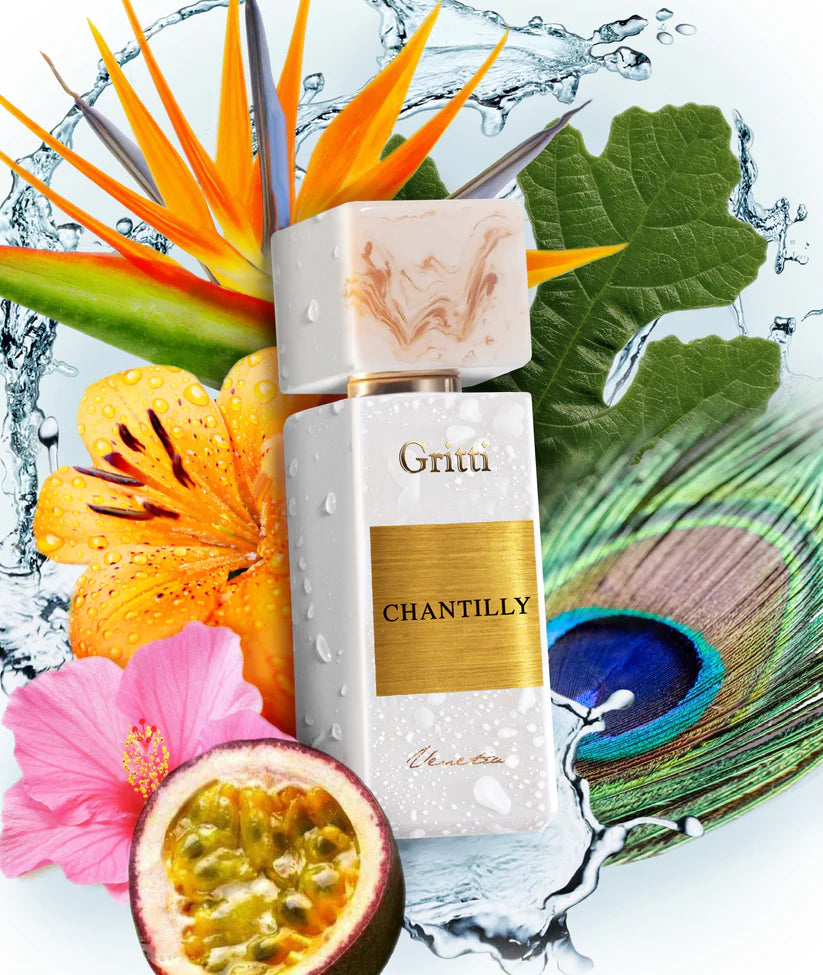 Gritti Venetias parfym Chantilly erbjuder en läcker doftkombination av melon, jordgubb och bergamot, som övergår till en hjärtnot av äpple, kokos och svartvinbärsblomma. Basen av vanilj, puder och musk skapar en mjuk och krämig avslutning.