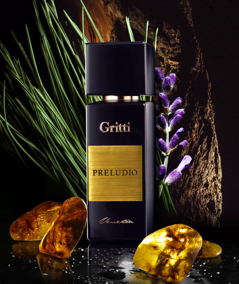 Gritti Venetias parfym Preludio erbjuder en uppfriskande doftkombination av fransk lavendel, siciliansk citron och havsnäppa, som övergår till en hjärtnot av sandelträ, tall och tobak. Basen av ambergris, musk och alger ger en varm och energisk avslutning.