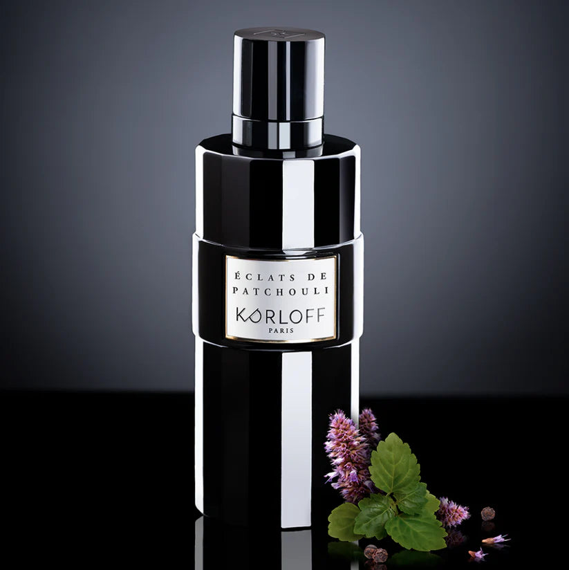 Korloff Éclats de Patchouli kombinerar den jordiga intensiteten av patchouli med fräscha toppnoter av saffran, svartpeppar, ylang-ylang och kanel. Hjärtnoterna av plommon, amber och svart jasmin tillför djup och komplexitet, medan basnoterna av läder, bläck och rök ger en kraftfull och mystisk avslutning.